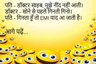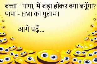 दोस्त – भाई, बीवी से डरते क्यों हो?पति – डरना जरूरी है, वरना वो याद दिलाती रहती है।😊😊😊😊 *********************************************** बेटा – पापा, मुझे मोबाइल चाहिए।पापा – क्यों?बेटा – ताकि मैं भी वॉट्सऐप पर पढ़ाई का बहाना कर सकूँ।😊😊😊😊 *********************************************** टीचर – बताओ, पृथ्वी गोल क्यों है?बच्चा – ताकि घूम-फिरकर EMI फिर से हमारे पास आ जाए।😊😊😊😊 *********************************************** पत्नी – मुझे …