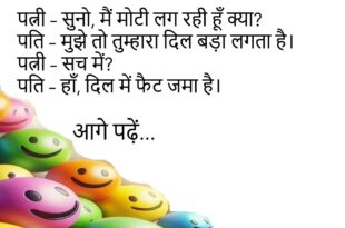 पत्नी – शादी से पहले आप मुझे चाँद-तारे तोड़कर लाने की बातें करते थे।पति – तो क्या अब बिजली का बिल नहीं भरता?😊😊😊😊 *********************************************** टीचर – कौन सा फल खाने से बच्चे तेज़ दिमाग़ वाले होते हैं?बच्चा – अंगूर।टीचर – कैसे?बच्चा – क्योंकि अंगूर खाकर ही बंदर ने इंसान बनना शुरू किया था।😊😊😊😊 *********************************************** पत्नी – सुनो जी, मेरा वजन …