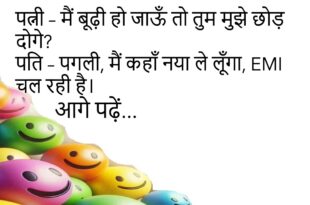 पत्नी – मैं बूढ़ी हो जाऊँ तो तुम मुझे छोड़ दोगे? पति – पगली, मैं कहाँ नया ले लूँगा, EMI चल रही है।😊😊😊😊 *************************************** दोस्त – यार, बीवी से इतना डरते क्यों हो? पप्पू – क्योंकि डर ही असली प्यार है।😊😊😊😊 *************************************** टीचर – दुनिया का सबसे तेज़ क्या है? पप्पू – मोबाइल की बैटरी का खत्म होना।😊😊😊😊 *************************************** पत्नी …