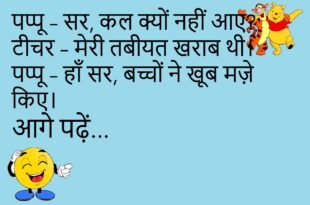 बॉस – तुम रोज लेट क्यों आते हो? पप्पू – सर, रास्ते में “काम करने की इच्छा” खो जाती है।😊😊😊😊 *************************************** पत्नी – सुनो जी, मेरी नई ड्रेस कैसी लगी? पति – मुझे तो EMI की तरह लग रही है।😊😊😊😊 *************************************** टीचर – बेटा, फ्यूचर क्या होता है? पप्पू – जब शादी हो जाएगी और सब कुछ खत्म हो जाएगा।😊😊😊😊 …