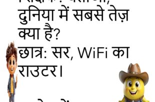 गर्लफ्रेंड – तुम मुझे कितना मिस करते हो?बॉयफ्रेंड – उतना जितना WiFi को करता हूँ… सिग्नल न मिले तो जीना मुश्किल! 😂 *********************************** पप्पू – पापा, आपने मुझे पैदा ही क्यों किया?पापा – बेटा, ये सवाल तेरी मम्मी से पूछो… उसी ने कहा था कुछ नया ट्राय करो! 🤣 *********************************** टीचर – Good Morning का मतलब?गोलू – गुरुजी, गुड मॉर्निंग …