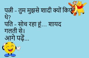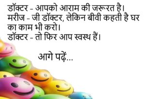 पत्नी – तुम्हारे बिना मैं अधूरी हूं।पति – और मेरे साथ पूरी तरह परेशान।😊😊😊😊 ****************************************** गोलू – यार, मैं अपनी बीवी को खुश कैसे करूं?मोनू – ATM कार्ड दो, पिन बताओ… बाकी काम वो खुद कर लेगी।😊😊😊😊 ****************************************** टीचर – ईमानदारी का इनाम क्या है?पप्पू – घर में शांति।😊😊😊😊 ****************************************** पत्नी – मैं जा रही हूं मायके।पति – अच्छा, कब …