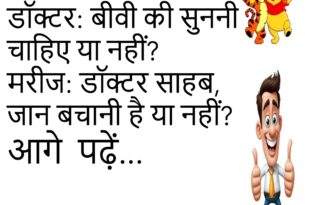 पप्पू– मम्मी पानी दो। मम्मी– खुद ले आ। पप्पू– अगर खुद लाना होता तो मम्मी क्यों बोलता?😂😂😂😂😂 **************************************** बॉयफ्रेंड– जानू मैं तुम्हारे बिना अधूरा हूं। गर्लफ्रेंड– तो बाकी आधा किसी और के साथ पूरा कर लो!😂😂😂😂😂 **************************************** टीचर– बताओ आत्मनिर्भरता किसे कहते हैं? छात्र– जब पापा का पैसा भी खुद खर्च करें!😂😂😂😂😂 **************************************** डॉक्टर– आपको आराम की जरूरत है, नींद …