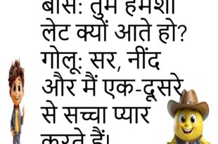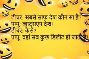 टीचर: अगर कोई मुसीबत में हो तो क्या करना चाहिए? पप्पू: फोटो खींचकर सोशल मीडिया पर डालो – लाइक्स भी मिलेंगे!😂😂😂😂 ************************************************* बॉस: तुम हमेशा लेट क्यों आते हो? गोलू: सर, नींद और मैं एक-दूसरे से सच्चा प्यार करते हैं!😂😂😂😂 ************************************************* पप्पू: मोबाइल की बैटरी और बीवी का मूड – दोनों का भरोसा नहीं! गोलू: और दोनों की चार्जिंग महंगी …