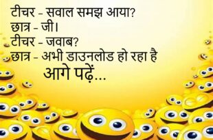 टीचर – “इतना होशियार क्यों हो?”छात्र – “होशियार रहना भी कोई कला है!”टीचर – “तो कला में मास्टर हो गए।”😊😊😊😊 **************************************** पति – “तुम बहुत खूबसूरत हो!”पत्नी – “बस ये सुनने के लिए शादी की?”पति – “और तुम रोज़ सुनने के लिए शादी की!”😊😊😊😊 **************************************** दोस्त – “कल रात क्या किया?”दोस्त 2 – “सोया।”दोस्त – “बस सोया? मज़ा आया?”😊😊😊😊 **************************************** …