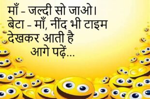 मम्मी – “इतना मिठाई क्यों खाया?”बच्चा – “आज तो खास दिन है।”मम्मी – “कौन सा खास दिन?”बच्चा – “मेरा मीठा दिन!”😊😊😊😊 **************************************** टीचर – “इतना देर से क्यों आया?”छात्र – “ट्रेन लेट थी।”टीचर – “तो ट्रेन के बहाने बनाना छोड़ो!”😊😊😊😊 **************************************** बॉस – “काम जल्दी क्यों नहीं हुआ?”कर्मचारी – “सॉरी, टाइम निकल गया।”बॉस – “काम भी टाइम के साथ निकलना …