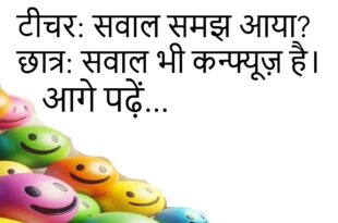डॉक्टर बोले: एक्सरसाइज करते होमरीज बोला: रोज़डॉक्टर बोले: कौन सीमरीज बोला: करवट बदलना 😂 ******************************************** पत्नी बोली: सुन रहे होपति बोला: हाँपत्नी बोली: क्या कहापति बोला: यही कि हाँ 😆 ******************************************** टीचर बोले: सबसे तेज़ क्या हैछात्र बोला: इंटरनेटटीचर बोले: नहींछात्र बोला: छुट्टी की खबर 😂 ******************************************** दोस्त बोला: इतना टेंशन क्योंजवाब मिला: ज़िंदगी भारी हैदोस्त बोला: हल्का करोजवाब मिला: …