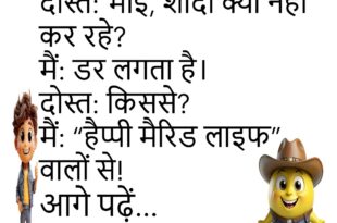 टीचर: बताओ शादी क्या है? छात्र: ऐसा ऐप जो इंस्टॉल हो जाए तो अनइंस्टॉल नहीं होता! 😄 ********************************************** दोस्त: आज बहुत खुश लग रहे हो। मैं: आज मोबाइल गिरा नहीं! 😅 ********************************************** पप्पू: भाई, लाइफ बहुत टफ है। गप्पू: क्यों? पप्पू: सॉफ्टवेयर अपडेट से ज़्यादा जिम्मेदारियाँ आ गईं! 😂 ********************************************** पत्नी: अगर मैं गुस्सा हो जाऊँ तो क्या करोगे? पति: …