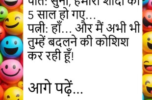 संता: डॉक्टर साहब, मुझे भूलने की बीमारी हो गई है। डॉक्टर: कब से? संता: कब से क्या? 😜 ****************************************** टीचर: बच्चों, अगर पृथ्वी से सूरज गायब हो जाए तो क्या होगा? पप्पू: सर, मोबाइल का चार्ज जल्दी खत्म हो जाएगा! 😄 ****************************************** पति: सुनो, हमारी शादी को 5 साल हो गए… पत्नी: हाँ… और मैं अभी भी तुम्हें बदलने की …