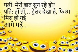 टीचर: होमवर्क क्यों नहीं किया? छात्र: सर, बिजली चली गई थी। टीचर: मोबाइल? छात्र: वो भी चार्ज नहीं था सर 🤭 ************************************ पत्नी: सुनो जी, मैं बहुत सुंदर हूँ ना? पति: हाँ… फ़िल्टर के साथ 😜 ************************************ पापा: पढ़ाई कैसी चल रही है? बेटा: पापा, नेटवर्क कमजोर है 😆 ************************************ पत्नी: मेरी बात सुन रहे हो? पति: हाँ हाँ… ट्रेलर …