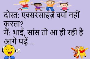 टीचर: “इतना लेट क्यों आए?” छात्र: “सपने में सो रहा था सर, हकीकत में लेट हो गया!”😊😊😊😊 ****************************************** पप्पू: “मेरी बीवी मुझसे बहुत प्यार करती है।” दोस्त: “क्यों?” पप्पू: “क्योंकि वो मुझसे रोज लड़ती है।”😊😊😊😊 ****************************************** मरीज: “डॉक्टर साहब, मुझे भूलने की बीमारी हो गई है।” डॉक्टर: “कब से?” मरीज: “कब से क्या?”😊😊😊😊 ****************************************** बॉस: “तुम काम क्यों नहीं कर …