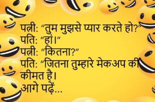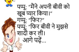 पत्नी: “तुम हर बात भूल जाते हो।” पति: “क्या?” पत्नी: “कुछ नहीं।”😊😊😊😊 ****************************************** टीचर: “अगर पृथ्वी से सूरज गायब हो जाए तो क्या होगा?” छात्र: “सर, तब रात भी दिन की तरह हो जाएगी।”😊😊😊😊 ****************************************** पप्पू: “क्या तुम मुझसे शादी करोगी?” लड़की: “हां।” पप्पू: “फिर तो तुम मेरी बहन बनोगी?”😊😊😊😊 ****************************************** डॉक्टर: “तुम रोज इतनी देर तक क्यों पढ़ते हो?” …