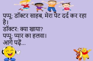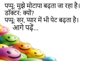 पप्पू: मुझे मोटापा बढ़ता जा रहा है।डॉक्टर: क्यों?पप्पू: सर, प्यार में भी पेट बढ़ता है।😊😊😊😊 ***************************************** टीचर: बताओ, सबसे बड़ा शहर कौन सा है?बच्चा: सर, पेट का शहर, जब भूख लगी हो।😊😊😊😊 ***************************************** पति: तुम हमेशा मुझसे लड़ती क्यों रहती हो?पत्नी: क्योंकि तुम्हारी आदतें लाजवाब हैं।😊😊😊😊 ***************************************** पप्पू: मुझे कोई नौकरी नहीं मिल रही।दोस्त: क्यों?पप्पू: सर, जॉब देने वाले भी …
