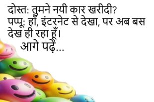पप्पू: डॉक्टर साहब, मैं भूल जाता हूँ।डॉक्टर: कब से?पप्पू: क्या?😊😊😊😊 ***************************************** दोस्त: तुमने नयी कार खरीदी?पप्पू: हाँ, इंटरनेट से देखा, पर अब बस देख ही रहा हूँ।😊😊😊😊 ***************************************** टीचर: बताओ, सूरज सबसे तेज क्यों चलता है?बच्चा: क्योंकि उसके पीछे सूर्यास्त का ट्रैफिक नहीं।😊😊😊😊 ***************************************** पत्नी: तुम मुझसे प्यार करते हो?पति: हाँ, पर WiFi की तरह, कभी-कभी कट जाता हूँ।😊😊😊😊 ***************************************** …