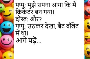 पति: मैं तुम्हारे लिए चाँद तोड़ कर लाऊँगा।पत्नी: अच्छा! पहले गैलरी खोलो, देख लूँ।😊😊😊😊 ***************************************** पप्पू: मुझे सपना आया कि मैं क्रिकेटर बन गया।दोस्त: और?पप्पू: उठकर देखा, बैट वॉलेट में था।😊😊😊😊 ***************************************** बच्चा: पापा, मुझे कहानी सुनाओ।पापा: कौन सी?बच्चा: घर की कहानी।😊😊😊😊 ***************************************** मम्मी: तुमने स्कूल का होमवर्क किया?बच्चा: नहीं मम्मी, किताबें ऑनलाइन पढ़ने में लगी थीं।😊😊😊😊 ***************************************** पप्पू: मुझे …