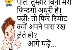पप्पू: डॉक्टर साहब, मुझे भूलने की बीमारी हो गई है।डॉक्टर: कब से?पप्पू: क्या कब से?😊😊😊😊 ***************************************** टीचर: बताओ, अगर पृथ्वी से सूरज गायब हो जाए तो क्या होगा?बच्चा: सर, छुट्टियाँ बढ़ जाएँगी!😊😊😊😊 ***************************************** मम्मी: बेटा, तुम्हारा कमरा साफ़ क्यों नहीं है?बच्चा: मम्मी, अराजकता में भी कला होती है।😊😊😊😊 ***************************************** पति: तुम्हारे बिना मेरी ज़िन्दगी अधूरी है।पत्नी: तो फिर रिमोट क्यों …