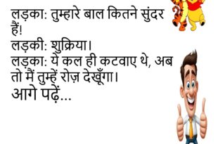 बॉस: तुम लेट क्यों आये?कर्मचारी: सर, सपने में ऑफिस आ गया था, इसलिए नींद पूरी नहीं हुई।😊😊😊😊 ***************************************** लड़का: तुम्हारे बाल कितने सुंदर हैं!लड़की: शुक्रिया।लड़का: ये कल ही कटवाए थे, अब तो मैं तुम्हें रोज़ देखूँगा।😊😊😊😊 ***************************************** बच्चा: मम्मी, मैं स्कूल नहीं जाऊँगा।मम्मी: क्यों?बच्चा: वहाँ हँसी की क्लास नहीं होती!😊😊😊😊 ***************************************** पप्पू डॉक्टर के पास गया।डॉक्टर: खांसी है?पप्पू: नहीं, सर, …