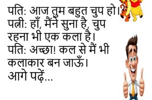 पप्पू: डॉक्टर साहब, मुझे भूलने की बीमारी हो गई है।डॉक्टर: कब से?पप्पू: कब से क्या?😊😊😊😊 ***************************************** टीचर: अगर पृथ्वी से सूरज दूर हो जाए तो क्या होगा?बच्चा: सर, हमारी छुट्टियाँ बढ़ जाएँगी!😊😊😊😊 ***************************************** मम्मी: बेटा, तुम्हारा कमरा साफ़ क्यों नहीं है?बच्चा: मम्मी, अराजकता में भी कला होती है।😊😊😊😊 ***************************************** पति: आज तुम बहुत चुप हो।पत्नी: हाँ, मैंने सुना है, चुप …