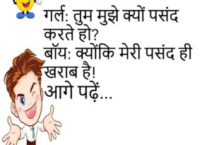 पति: आज खाने में क्या है? पत्नी: मोबाइल उठाओ पति: क्यों? पत्नी: स्विगी-ज़ोमाटो डाउनलोड है ना! 😜 ************************************** गर्ल: तुम मुझे क्यों पसंद करते हो? बॉय: क्योंकि मेरी पसंद ही खराब है! 🤣 ************************************** टीचर: बेटा, जीवन में लक्ष्य ज़रूरी है! स्टूडेंट: हाँ मैम, इसलिए तो क्रश पर निशाना साधा है! 😂 ************************************** डॉक्टर: सुबह जल्दी उठो, दौड़ो, कसरत करो! …