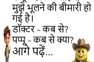 पप्पू – डॉक्टर साहब, मुझे भूलने की बीमारी हो गई है। डॉक्टर – कब से? पप्पू – कब से क्या?😊😊😊😊 *********************************** टीचर – बच्चों, अगर तुम्हारे पास 2 आम हैं और मैं 1 ले लूँ, तो कितने बचे? बच्चा – सर, 1 आम और 1 गुस्सा।😊😊😊😊 *********************************** पति – मैं तुम्हारे बिना नहीं रह सकता। पत्नी – अच्छा? पति – …
