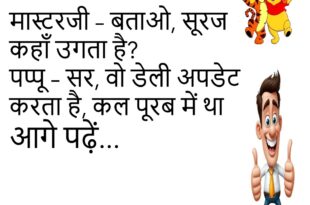 टीचर – बताओ, सूर्य किस दिशा में उगता है?पप्पू – जहाँ बादल ना हों 😜 ************************************ टीचर – एक किलो लोहे और एक किलो रुई में कौन भारी है?पप्पू – सर, बैग में दोनों डालिए, फिर बताइए 😂 ************************************ टीचर – 1 से 100 तक गिनती सुनाओ!पप्पू – इंटरनेट चला दो सर, मैं YouTube से सुना दूँ 😆 ************************************ मास्टरजी …