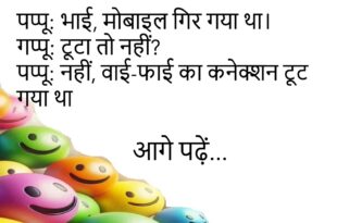 टीचर – कौन-सा देश Mobile सबसे ज़्यादा इस्तेमाल करता है? पप्पू – “Offline वाला कोई नहीं, सब Online हैं!”😊😊😊😊 **************************************** पत्नी – सुनो, मेरे बाल झड़ रहे हैं। पति – चिंता मत करो, बाल कम होंगे तो Shampoo का खर्च भी कम होगा!😊😊😊😊 **************************************** दोस्त – भाई, शादी कैसी लग रही है? दूल्हा – जैसे Free Trial खत्म हो गया …