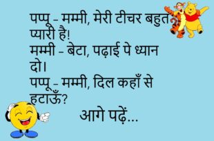 पप्पू – मम्मी, मुझे पैसे चाहिए। मम्मी – क्यों? पप्पू – किसी गरीब की मदद करनी है। मम्मी – कौन गरीब? पप्पू – मैं खुद! 😅 ***************************************** बॉस – तुम्हारा सपना क्या है? कर्मचारी – कि एक दिन आप छुट्टी पर जाएं और मैं प्रमोशन पा लूँ! ***************************************** डॉक्टर – तुम परेशान क्यों हो? मरीज – गर्लफ्रेंड कहती है ‘तुम …