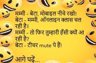 बच्चा – मम्मी, मेरे बाल क्यों झड़ रहे हैं? मम्मी – बेटा, ज़्यादा मोबाइल मत देखा करो। बच्चा – पर मम्मी, ये तो आप WhatsApp पे भेजती हो! 😜 ***************************************** पप्पू – मम्मी, मेरा नाम “Google” रख दो। मम्मी – क्यों बेटा? पप्पू – सब मुझसे सवाल पूछते रहते हैं! 😂 ***************************************** पत्नी – सुनो जी, मुझे एक diamond ring …