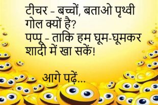 पत्नी – आज खाना कौन बनाएगा?पति – जिसने “I love you” कहा था! ❤️😂 *********************************************** बच्चा – पापा, परीक्षा में नंबर कैसे बढ़ाऊँ?पापा – प्रिंसिपल के बेटे से दोस्ती कर ले! 😆 *********************************************** दोस्त – तू इतना खुश क्यों है?पप्पू – बीवी मायके गई है, और फ्रिज में ठंडा पानी है! 🧊🤣 *********************************************** टीचर – पृथ्वी घूमती क्यों है?छात्र – …