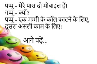 पप्पू – मेरे पास दो मोबाइल हैं!गप्पू – क्यों?पप्पू – एक मम्मी के कॉल काटने के लिए, दूसरा असली काम के लिए! 😜 *********************************************** पत्नी – मुझे गुस्सा मत दिलाओ!पति – गिफ्ट दो तो कंट्रोल कर लो मैं! 🎁🤣 *********************************************** बच्चा – मम्मी, क्या मैं सुपरहीरो बन सकता हूँ?मम्मी – पहले दूध पी ले बेटा, फिर दुनिया बचा लेना! 🦸♂️😂 …