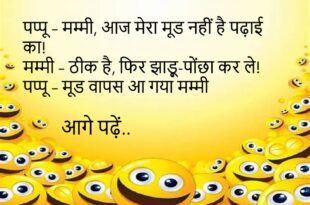 पप्पू – मम्मी, आज मेरा मूड नहीं है पढ़ाई का!मम्मी – ठीक है, फिर झाड़ू-पोंछा कर ले!पप्पू – मूड वापस आ गया मम्मी! 📚😂 *********************************************** पत्नी – सुनिए, मैं मोटी लग रही हूँ क्या?पति – तुम्हें देखकर तो स्केल भी शर्माता है! 😆 *********************************************** टीचर – जो झूठ बोलेगा उसे सज़ा मिलेगी!पप्पू – मैडम, आप बहुत सुंदर हैं! 😜 *********************************************** …