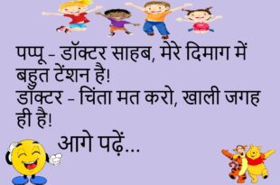पप्पू – डॉक्टर साहब, मेरे दिमाग में बहुत टेंशन है!डॉक्टर – चिंता मत करो, खाली जगह ही है! 🧠😂 *********************************************** पत्नी – मैं जा रही हूँ मायके!पति – रास्ते में चार्जिंग पॉइंट दिखे तो बता देना, मोबाइल भी भेज दूँगा! ⚡🤣 *********************************************** टीचर – कौन सा पक्षी उड़ नहीं सकता?पप्पू – ब्रॉयलर चिकन, सर! 🍗😂 *********************************************** दोस्त – भाई, तेरी …