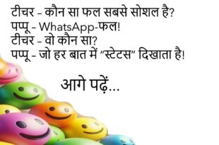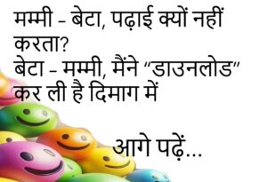 गर्लफ्रेंड – मुझे महंगे गिफ्ट पसंद हैं। बॉयफ्रेंड – तब तो मेरे सपनों में आओ, वहां सब फ्री है!😊😊😊😊😊 *************************************** पप्पू – पापा, आज मैं स्कूल नहीं जाऊंगा। पापा – क्यों? पप्पू – स्कूल में “नो बोरिंग” डे मना रहे हैं, मतलब टीचर नहीं आएंगी!😊😊😊😊😊 *************************************** मम्मी – पढ़ाई की या नहीं? बेटा – मम्मी, पहले “नेटवर्क स्टेबल” कर लूं!😊😊😊😊😊 …