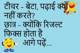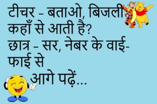 टीचर – बच्चे, बताओ सबसे बड़ा फल कौन-सा है? पप्पू – मोबाइल… क्योंकि सब उसके पीछे पागल हैं! 📱😜 ******************************************* बॉयफ्रेंड – जानू, तुम मेरे दिल में रहती हो ❤️ गर्लफ्रेंड – अच्छा, किराया दो फिर! 😂 ******************************************* डॉक्टर – तुम्हें क्या तकलीफ है? मरीज – बीवी से छुटकारा चाहिए, पर दर्द ऐसा हो कि सबको लगे मैं बीमार हूँ …