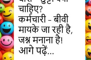 पति – मैं तुम्हारे बिना नहीं रह सकता! पत्नी – अरे वाह! पति – हां, गैस सिलेंडर का ढक्कन तुम ही खोलती हो!😊😊😊😊😊 ****************************** दोस्त – यार, बीवी से बचने का कोई तरीका बताओ। दूसरा – मोबाइल साइलेंट रखो और चेहरा मासूम!😊😊😊😊😊 ****************************** ग्राहक – ये टमाटर इतने महंगे क्यों? दुकानदार – इसमें इमोशन्स मिले हैं भाई, आँसू आ जाते …