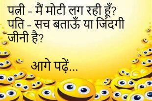 पत्नी – मैं कैसी लग रही हूँ? पति – दिल तो करता है गोद में उठा लूँ। पत्नी – वाह! पति – वजन मशीन पर चढ़ाने के लिए।😊😊😊😊 ******************************************* पप्पू – यार, मैं गधे की तरह काम करता हूँ। गोलू – क्यों? पप्पू – ऑफिस वाले “डंकी” कहते हैं।😊😊😊😊 ******************************************* पत्नी – तुम मुझे क्यों सताते हो? पति – ताकि …