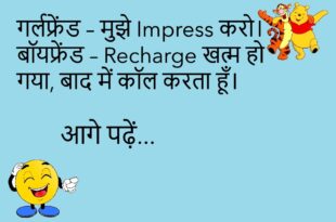 आदमी – भगवान, औरतें इतनी समझदार क्यों नहीं होतीं? भगवान – बेटा, अगर होतीं तो तू पैदा ही नहीं होता।😊😊😊😊 ******************************************* टीचर – तुम पढ़ाई क्यों नहीं करते? बच्चा – क्योंकि मुझे Google से प्यार है।😊😊😊😊 ******************************************* पप्पू – पापा, मुझे शादी करनी है। पापा – किससे? पप्पू – व्हाट्सएप वाली लड़की से। पापा – बेटा, शादी कॉल से होती …