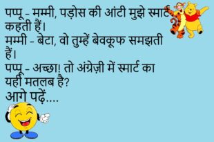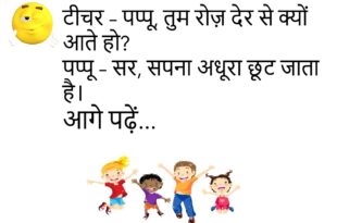 पप्पू – मम्मी, मेरा रिजल्ट आ गया। मम्मी – कैसा रहा? पप्पू – 80% मार्क्स आए। मम्मी – वाह! पप्पू – लेकिन दोनों सब्जेक्ट मिलाकर।😊😊😊😊 **************************************** टीचर – 2 और 2 कितने होते हैं? पप्पू – सर, मूड पर depend करता है।😊😊😊😊 **************************************** पत्नी – मैं सुंदर लग रही हूँ न? पति – हाँ, जब लाइट बंद हो जाती है …