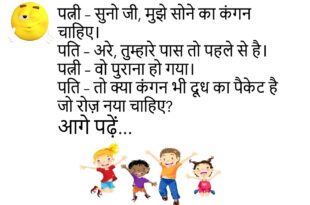 टीचर – बताओ 1857 की क्रांति कब हुई थी? पप्पू – सर, 1857 में। टीचर – शाबाश! किसने बताई? पप्पू – गूगल बाबा ने!😂😊😊😊 **************************************** पत्नी – सुनो जी, मुझे सोने का कंगन चाहिए। पति – अरे, तुम्हारे पास तो पहले से है। पत्नी – वो पुराना हो गया। पति – तो क्या कंगन भी दूध का पैकेट है जो …