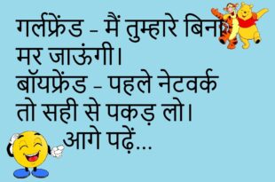पत्नी – मैं तुमसे बात नहीं करूंगी। पति – ओके, नेटफ्लिक्स ऑन कर देता हूँ।😊😊😊😊 ******************************** बच्चा – पापा, मच्छर क्यों काटते हैं? पापा – क्योंकि वे दवाई की दुकान से दोस्ती रखते हैं।😊😊😊😊 ******************************** दोस्त – तेरे पास पैसे क्यों नहीं हैं? पप्पू – क्योंकि वाईफ है।😊😊😊😊 ******************************** गर्लफ्रेंड – मैं तुम्हारे बिना मर जाऊंगी। बॉयफ्रेंड – पहले नेटवर्क …
