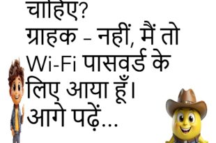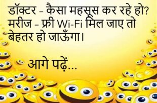 पत्नी – मैं तुम्हें छोड़कर चली जाऊंगी। पति – प्लीज जाते वक्त रिमोट रख जाना।😊😊😊😊 ******************************** बच्चा – पापा, आप मुझे कभी डांटते क्यों नहीं? पापा – बेटा, मोबाइल की वजह से टाइम नहीं मिलता।😊😊😊😊 ******************************** दोस्त – तू इतना चुप क्यों है? पप्पू – बैटरी लो है।😊😊😊😊 ******************************** वेटर – सर, पानी चाहिए? ग्राहक – नहीं, मैं तो Wi-Fi …