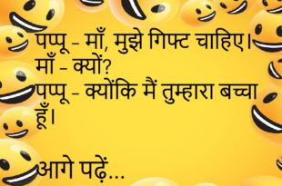 वेटर – सर, खाना कैसा लगा? ग्राहक – भूख लगी थी, वरना मज़ाक था।😊😊😊😊 ******************************** पत्नी – आजकल तुम मुझसे प्यार नहीं करते। पति – अरे मैडम, लव मैरिज की EMI भर रहा हूँ।😊😊😊😊 ******************************** पप्पू – माँ, मुझे गिफ्ट चाहिए। माँ – क्यों? पप्पू – क्योंकि मैं तुम्हारा बच्चा हूँ।😊😊😊😊 ******************************** टीचर – “चाय” किससे बनती है? बच्चा – …