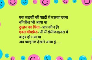 गर्लफ्रेंड अपने बॉयफ्रेंड को पिता से मिलवाती है बॉयफ्रेंड (गर्लफ्रेंड के पिता से)- मैं आपकी बेटी से शादी करना चाहता हूं गर्लफ्रेंड के पिता- कितना कमा लेते हो? बॉयफ्रेंड- 20 हजार रुपये प्रति माह गर्लफ्रेंड के पिता- मैं अपनी बेटी को 15 हजार रुपये प्रति माह पॉकेट मनी देता हूं बॉयफ्रेंड- मैं भी तो उसी को जोड़कर ही तो बता …