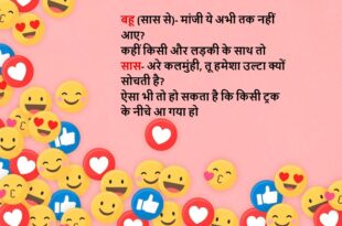 घर में नई नवेली दुल्हन के आने पर सास ने समझाया देख बहु इस घर के नियम-कानून अच्छे से समझ ले मुझे इस घर की प्रधानमंत्री, ससुर को राष्ट्रपति, पति को गृहमंत्री और अपनी ननद को योजना मंत्री समझना अब तू बोल तू कौनसा विभाग लेगी? बहू बोली- मां जी मैं तो आजीवन विपक्ष में रहकर आपकी सरकार गिराने की …