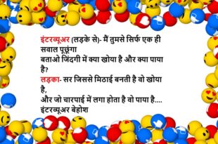 रवि- गुरुजी मुझे बताइए कि मैं कैसे अपने अंदर की कमियां ढूंढू? गुरुजी – बेटा…बहुत आसान है शादी कर लो। रवि- उससे क्या होगा गुरुजी? गुरुजी- तुम्हारी पत्नी न केवल तुम्हारी बल्कि तुम्हारे पूरे खानदान की कमियां, इतनी बार गिनवाएगी कि तुम्हें याद हो जाएंगी..😆🤣🤣🤣🤣😝😝😝 ************************************************************************************ भाभी (देवर से)- पता है, तुम्हारे भैया ने मेरा नया-नया बैंक खाता खुलवाया है …