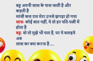टीचर (चिंटू से)- जिंदा रहने के लिए क्या क्या चीजें जरुरी हैं? चिंटू- नहीं पता मैडम टीचर- अरे जो आता है, वहीं बता दो चिंटू- जिंदा रहने के लिए तेरी कसम, एक मुलाकात जरुरी है सनम टीचर बेहोश…..😆🤣🤣🤣🤣😝😝😝 *************************************************************************************** बहू अपनी सास के पास जाती है और कहती है मांजी कल रात मेरा उनसे झगड़ा हो गया सास- कोई बात …