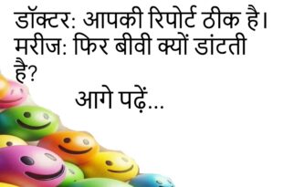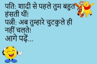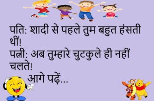 पत्नी: मेरे बाल झड़ रहे हैं!पति: चलो, कम से कम झगड़ा तो नहीं कर रहे! 😂 ************************************* डॉक्टर: आपको क्या तकलीफ है?मरीज: बीवी की बात नहीं काट सकता, गला दर्द करता है! 😆 ************************************* दोस्त: शादी कैसी चल रही है?पति: जैसे वाईफाई – कभी कनेक्शन स्ट्रॉन्ग, कभी No Signal! 📶 ************************************* बच्चा: मम्मी, ये शादी क्या होती है?मम्मी: एक ऐसा …