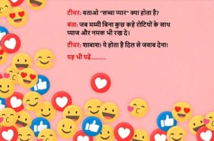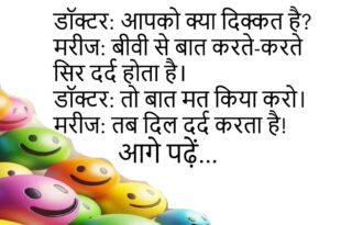 गर्लफ्रेंड – मुझे कोई प्यारा नाम दो।बॉयफ्रेंड – ओके, “Free WiFi” कैसा रहेगा? सब तुम्हें पकड़ना चाहते हैं! 😂 ************************************* डॉक्टर – आपको क्या परेशानी है?मरीज़ – डॉक्टर साहब, मैं बात करते-करते भूल जाता हूँ।डॉक्टर – कब से?मरीज़ – क्या कब से? 😅 ************************************* टीचर – बताओ, समुद्र में नमक क्यों होता है?छात्र – क्योंकि वहां कोई ‘किचन गार्डन’ नहीं …