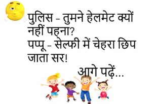 पुलिस – तुमने हेलमेट क्यों नहीं पहना?पप्पू – सेल्फी में चेहरा छिप जाता सर! 😅 ************************************* माँ – बेटा, खाना खाया?बेटा – नहीं माँ, वाईफाई खा लिया! 😜 ************************************* पप्पू – यार, तेरे बाल इतने चमकते कैसे हैं?गप्पू – बिजली का झटका खाया था कल! ⚡🤣 ************************************* गर्लफ्रेंड – तुम मुझे कितना प्यार करते हो?बॉय – उतना, जितना इंडिया में …
