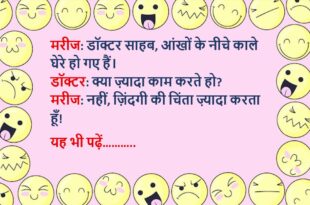 डॉक्टर: आपकी बीमारी के लिए ये दवा रोज़ लेनी होगी। मरीज: डॉक्टर साहब, क्या इसे खाने के बाद शराब भी पी सकते हैं? डॉक्टर: नहीं। मरीज: तो मैं दवा छोड़ देता हूं, शराब तो रोज़ पीनी है!😆🤣🤣🤣🤣😝😝😝 ************************************************************************************ मरीज: डॉक्टर साहब, मेरा दिल बहुत तेज़ धड़कता है। डॉक्टर: क्या आपकी कोई आदत है? मरीज: हां, जब पत्नी गुस्सा करती है, …